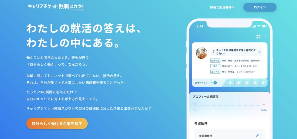 3. キャリアチケットスカウト」:学歴・実績不要!「価値観」で企業とマッチング