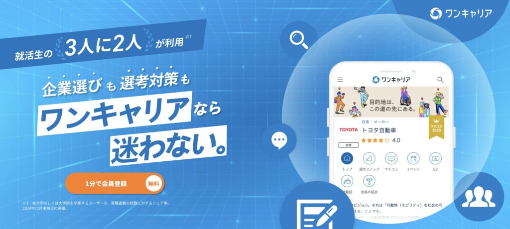 これも定番すぎますが、内定者のES・選考情報が見放題の「ONECAREER」は導入必須です。